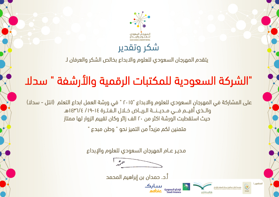 SADLA has participated in The 2015 Saudi Festival for Science and Innovation at Riyadh's International Convention and Exhibition Center.